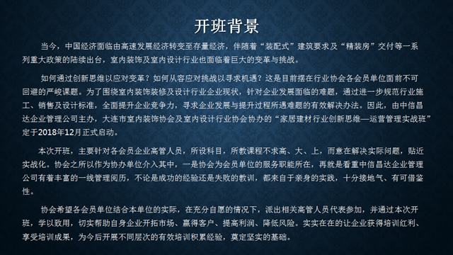 • “家居建材行业创新思维”运营管理实战班开课